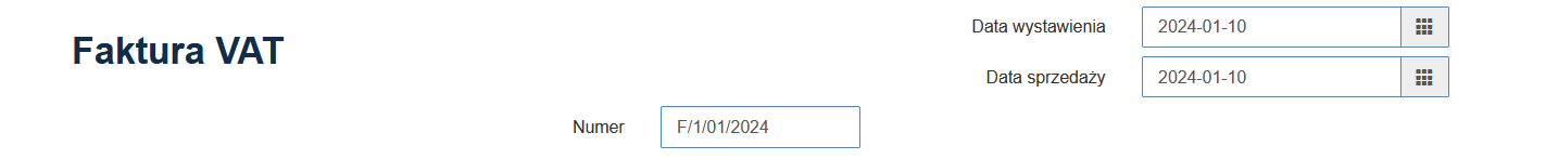 - w pierwszej sekcji określ datę wystawienia dokumentu oraz datę sprzedaży.