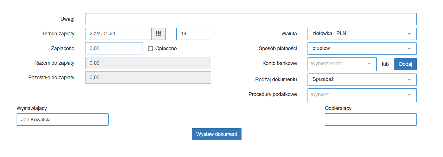 Jeśli dokument jest gotowy do wystawienia skorzystaj z przycisku „Wystaw dokument”.