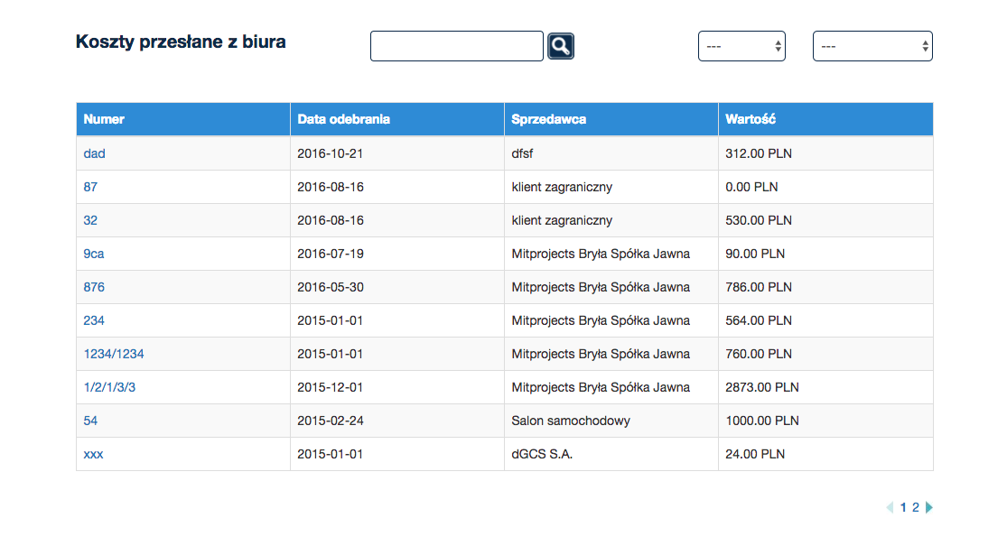 Po przejściu do modułu kosztów znajdziesz wszystkie koszty dodawane przez biuro prowadzące twoją księgowość.